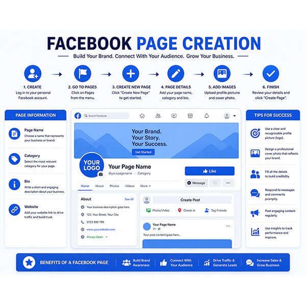 Our Facebook Page Creation service helps your business establish a professional social media presence and prepare your brand for consistent engagement and growth.
